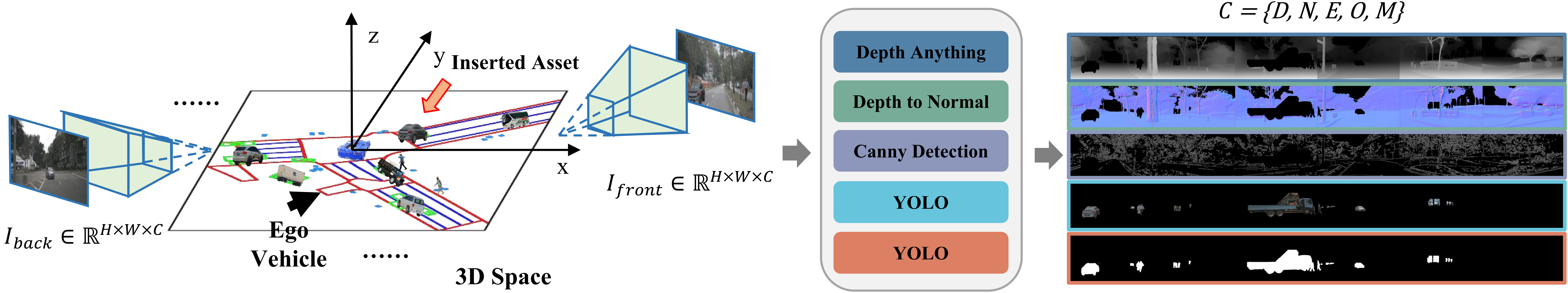 Dream4Drive first decomposes the input video into several 3D-aware guidance maps and subsequently renders the 3D assets onto these guidance maps.