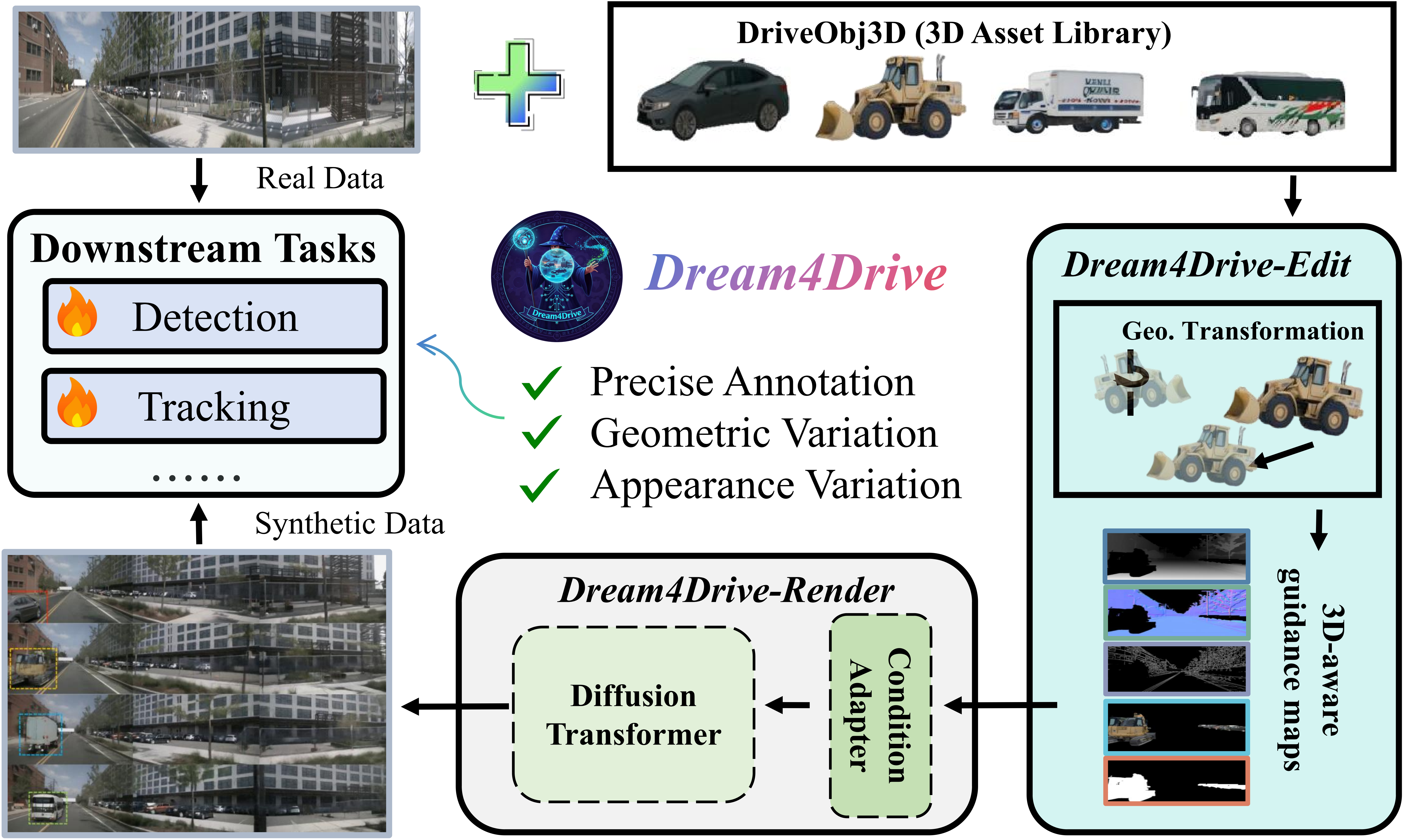 To thoroughly demonstrate the benefit of synthetic data, we introduce Dream4Drive, a novel synthetic data generation framework designed for enhancing the downstream perception tasks.
